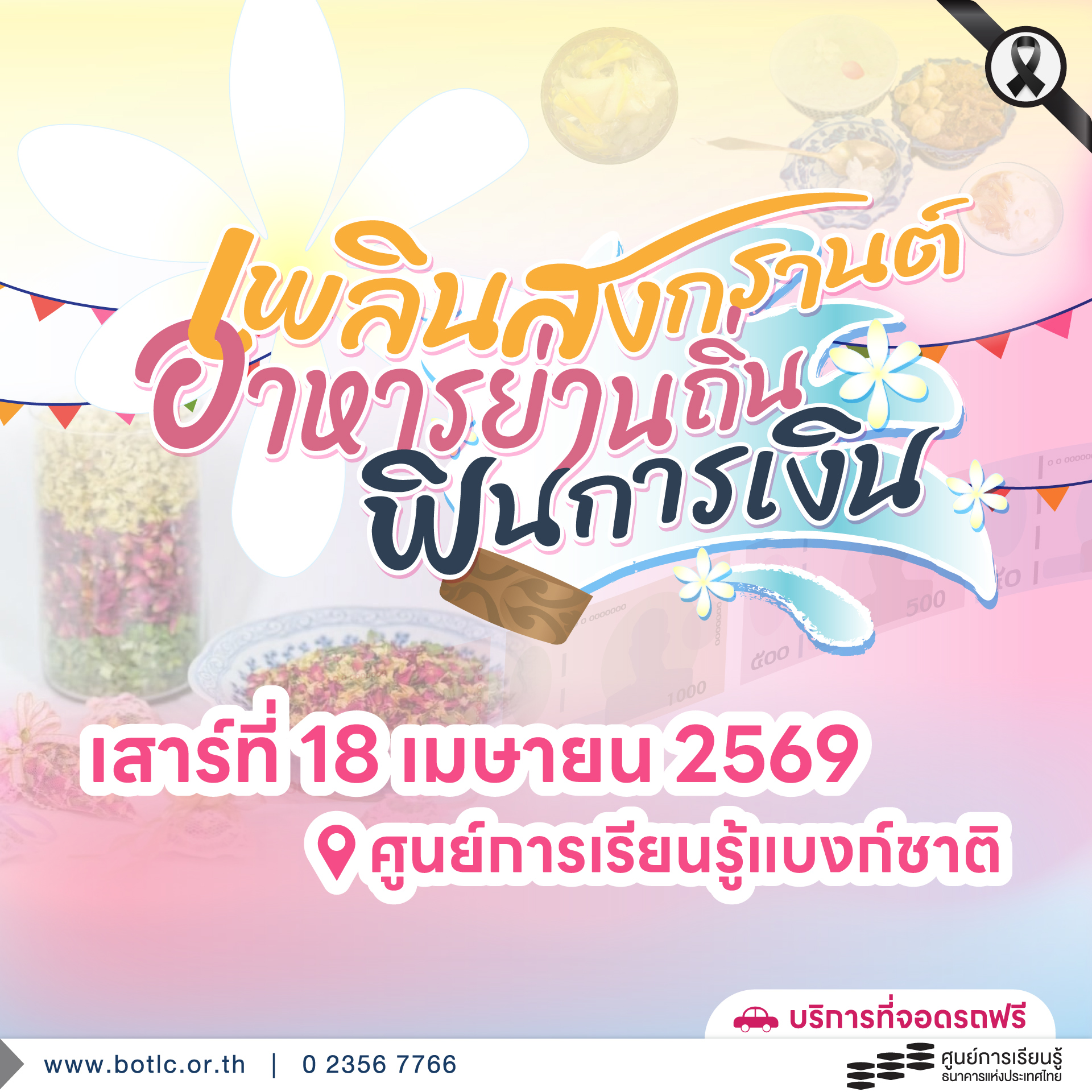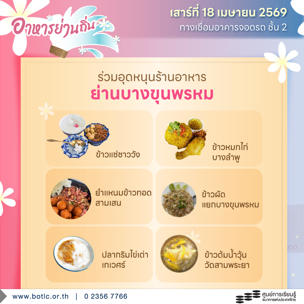 ชวนร่วมกิจกรรม “เพลินสงกรานต์ อาหารย่านถิ่น ฟินการเงิน” | เสาร์ที่ 18 เม.ย. 69 | ศูนย์การเรียนรู้ ธปท.