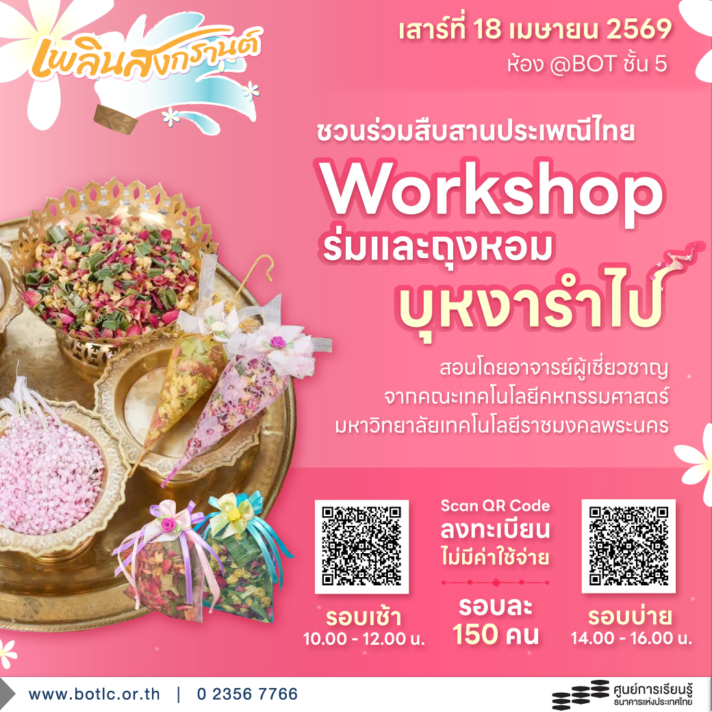 *รับเฉพาะผู้ลงทะเบียนล่วงหน้าเท่านั้น* (โปรดยืนยันสิทธิ์เข้าร่วมกิจกรรมทาง Facebook หรือเว็บไซต์ BOTLC อีกครั้ง ในวันที่ 30 มี.ค. 69)